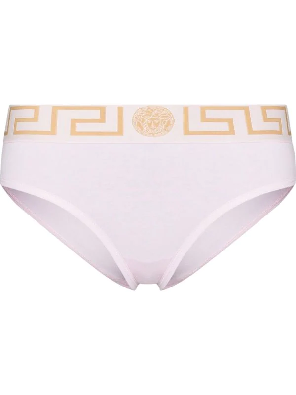 Rose poudré, coton stretch, imprimé La Greca signature, motif Medusa, ceinture à logo, taille basse. N’oubliez pas : cet article doit être essayé par-dessus vos propres vêtements.
