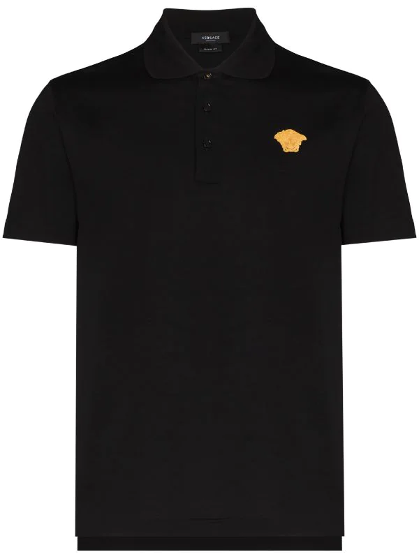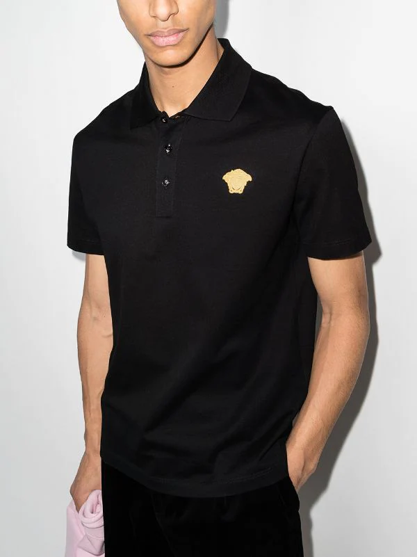 Motif Medusa, col polo, patte de boutonnage sur le devant, manches courtes, ourlet droit. Couleur : noir. Matière : coton.