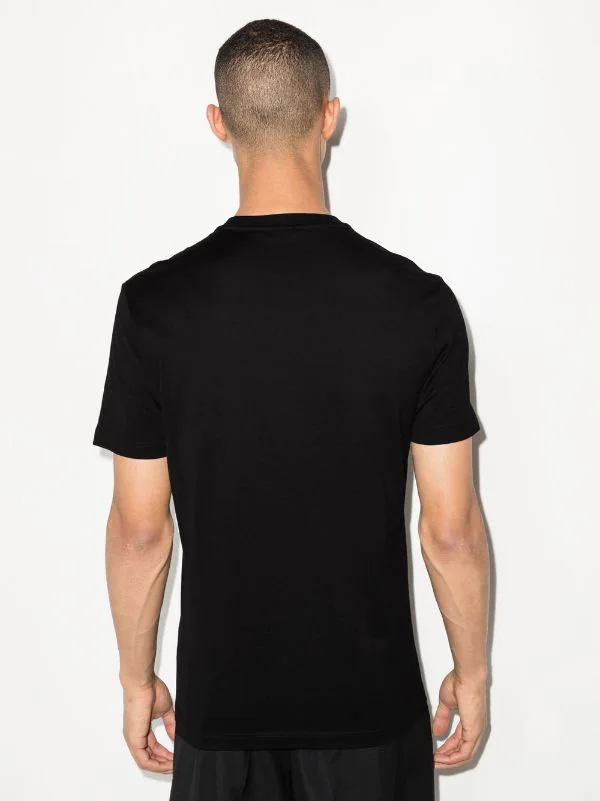 Noir, coton, logo imprimé à la poitrine, encolure ronde, manches courtes, ourlet droit.