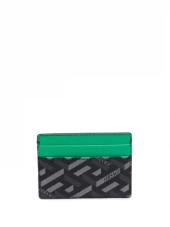( Nouvelle Collection ) Versace Porte-cartes En Cuir à Imprimé Greca 5B560 NERO+GRIGIO+BRIGHT GREEN