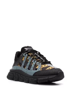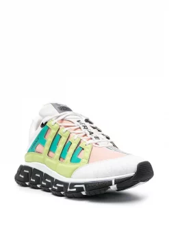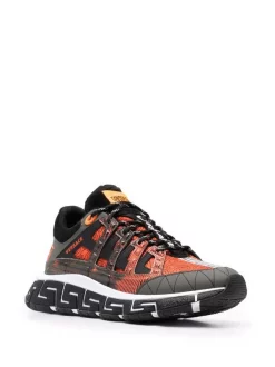 Versace 6K090 KHAKI BRIGHT ORANGE NERO Baskets Trigreca Lacées à Design à Empiècements Homme