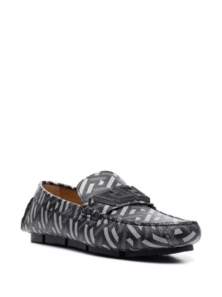 ( Nouvelle Collection ) Versace 5B050 NERO+GRIGIO Mocassins La Grega à Entaille Penny Homme