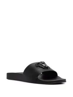 ( Nouvelle Collection ) Versace KVO41 NERO ORO VERSACE Claquettes à Plaque Medusa Head Femme