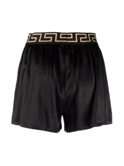 ( Nouvelle Collection ) Versace 5P210 CANDY+BLACK Short De Pyjama à Imprimé La Greca Signature Femme