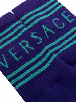 ( Nouvelle Collection ) Versace 2W020 WHITE BLACK Chaussettes Dream à Logo Imprimé Femme