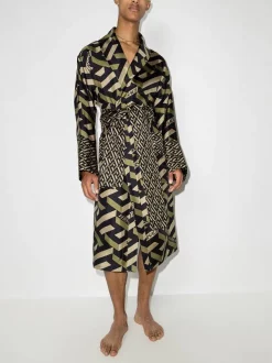 ( Nouvelle Collection ) Versace 5P210 CANDY+BLACK Peignoir En Soie à Imprimé La Greca Femme