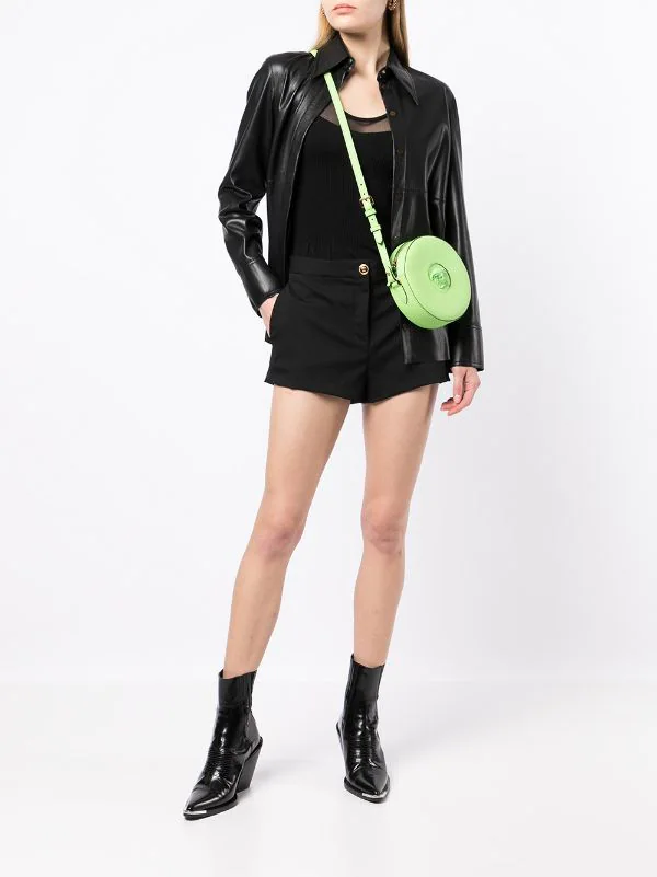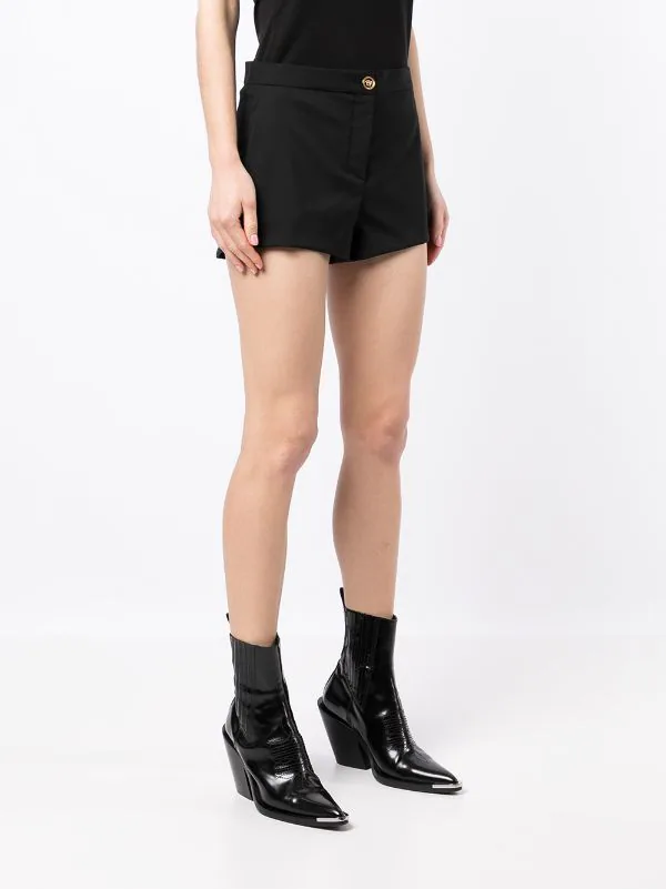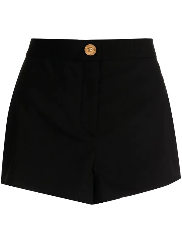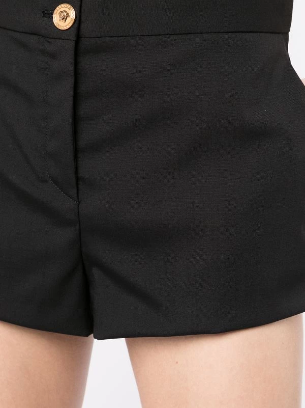 Boutons à logo embossé, taille haute, poches plaquées latérales. Couleur : noir. Matière : laine vierge.