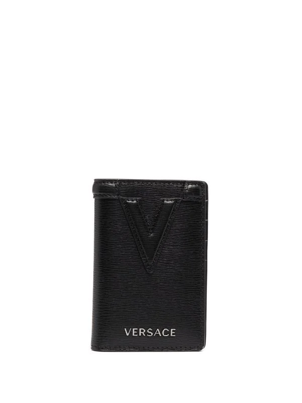 Design pliant, patch logo sur le devant, tissu flammé, plaque logo argentée, compartiments intérieurs pour carte, logo intérieur embossé. Couleur : noir. Matière : cuir.