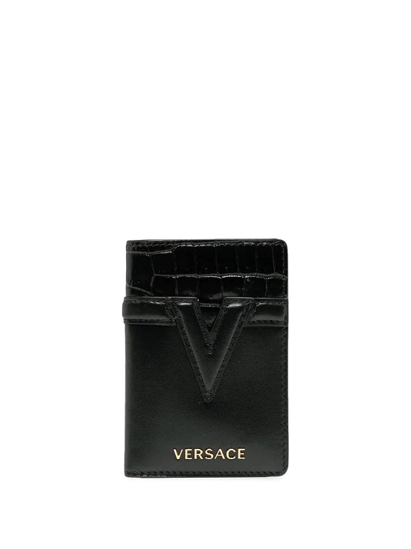 Versace porte-cartes en cuir à logo embossé
