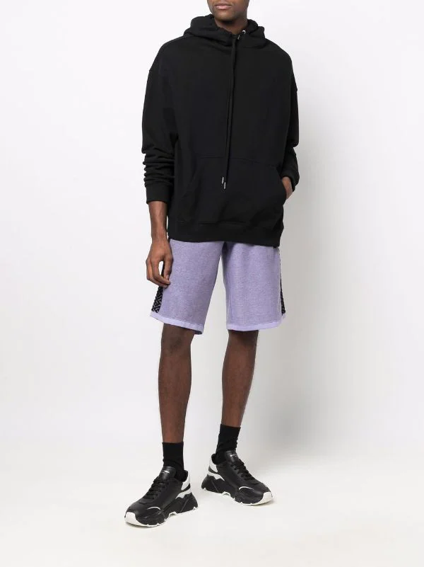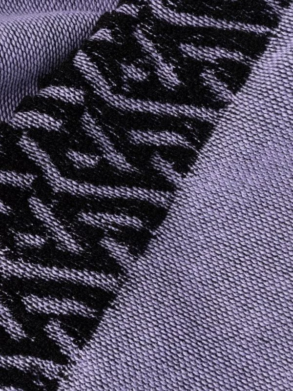 Taille élastique à lien de resserrage, imprimé La Greca signature, logo brodé sur le côté, coupe droite. Couleur : violet. Matière : coton mélangé.