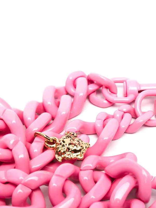 Détails de chaînes, breloque à logo, fermoir mousqueton.
