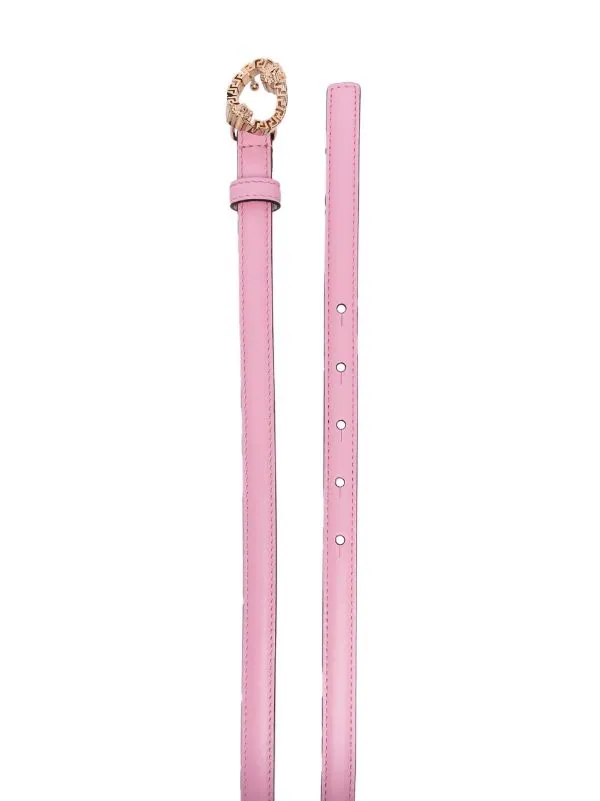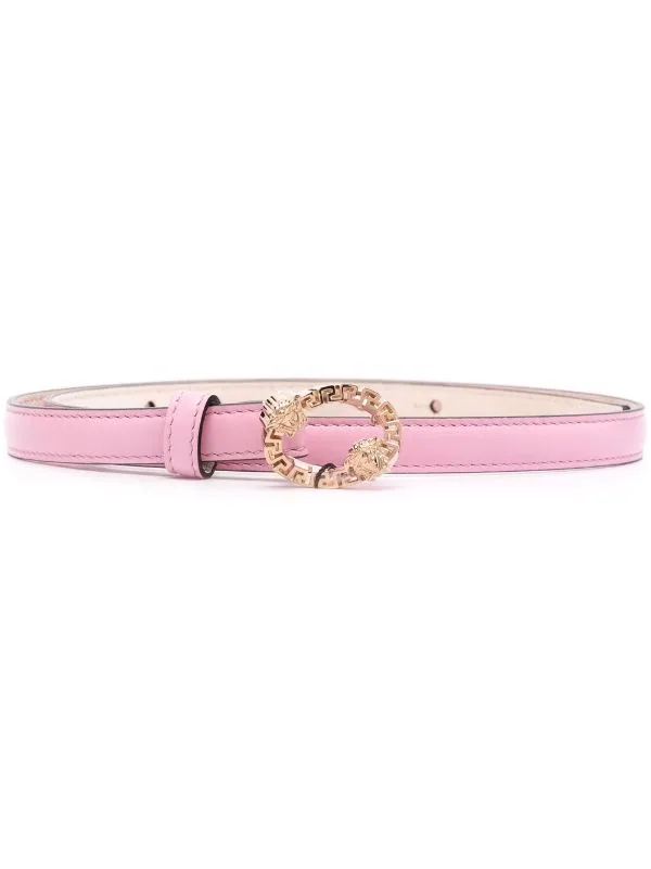 Finitions en métal doré, détail Medusa, détail Greca signature, trous percés. Couleur : rose. Matière : cuir de veau.