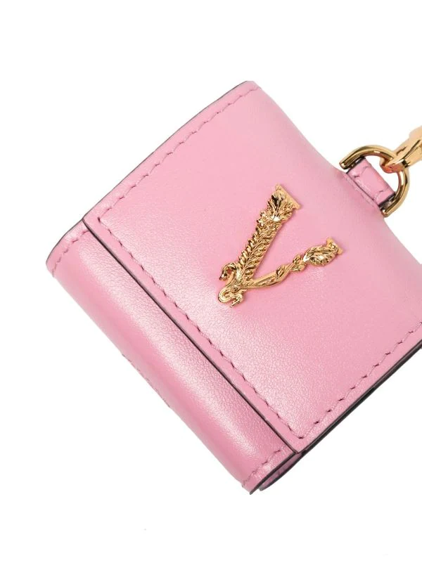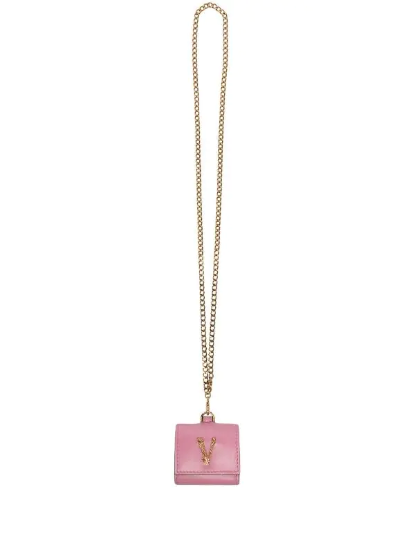 Lanière autour du cou à maillons, rabat sur le dessus, détail de logo Virtus signature, logo imprimé à l’arrière, compartiment principal. Couleur : rose. Matière : cuir.
