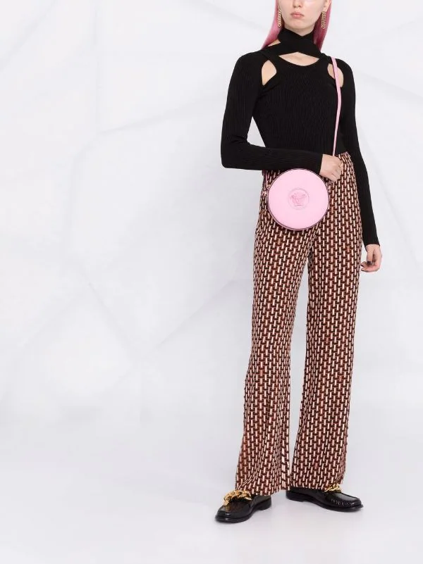 Détail Medusa, fermeture zippée sur le dessus, compartiment principal, poche intérieure plaquée, bride porté épaule détachable. Matière : cuir.