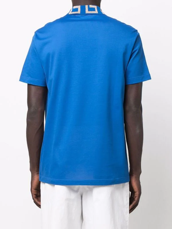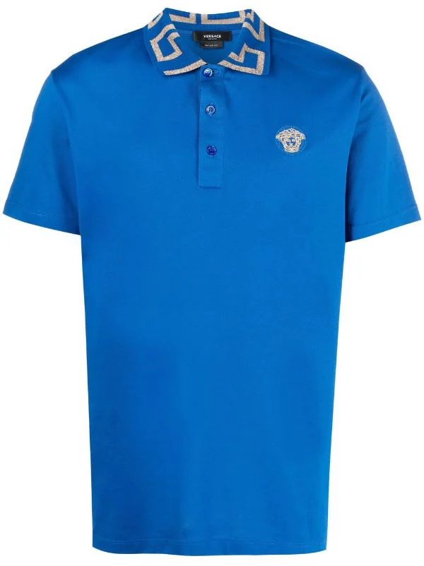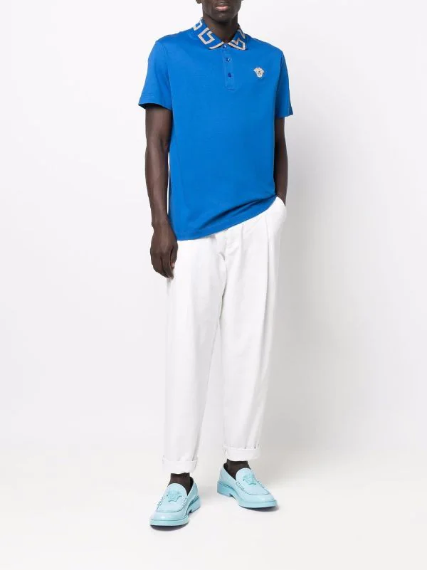 Détail Greca signature, motif Medusa, col polo, manches courtes, ourlet droit. Matière : coton.