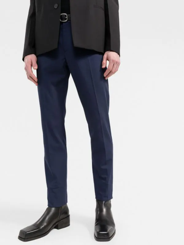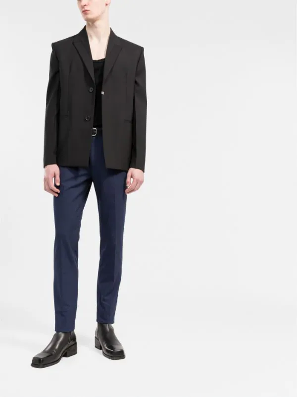 Détail Greca signature, boutonnière sur le devant, poches latérales fendues, poches arrière passepoilées. Matière : coton.
