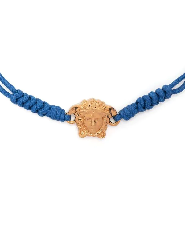 Motif Medusa, plaque logo dorée, lien de resserrage, taille ajustable. Couleur : bleu. Matière : coton.