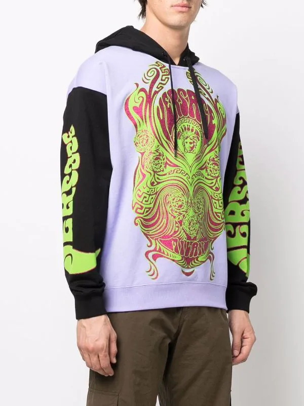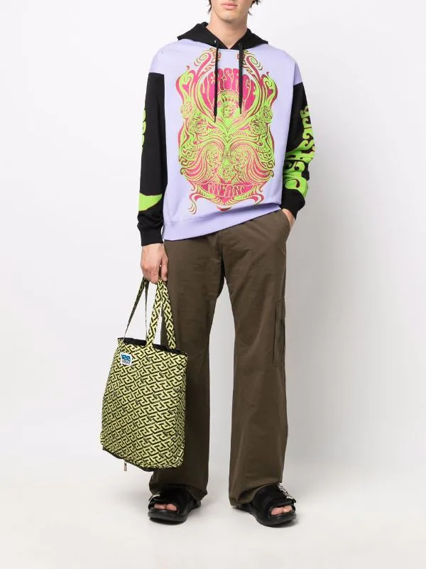 Polaire, imprimé graphique intégral, épaules tombantes, manches longues, manches à poignets resserrés, capuche à lien de resserrage, ourlet droit. Matière : coton.