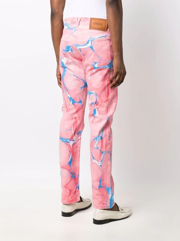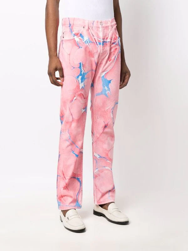Taille mi-haute, patch logo sur l’arrière, passants de ceinture, fermeture à zip et boutons sur le devant, coupe droite, cinq poches classiques.