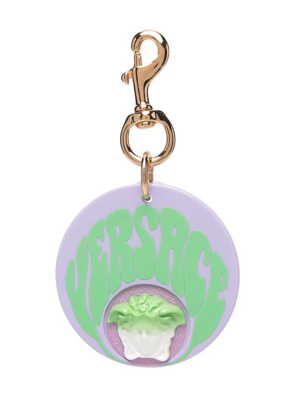 Motif Medusa, effet dégradé, détail de logo embossé, finitions en métal doré, fermoir mousqueton. Matière : métal.