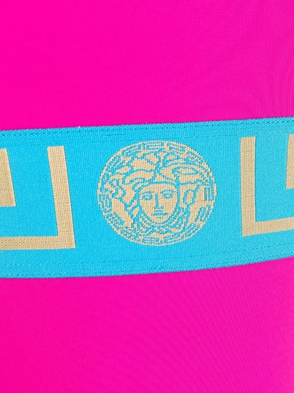 Construction stretch, détail Greca signature, encolure arrondie, dos-nu. Veillez à essayer les maillot de bain par-dessus vos propres sous-vêtements.