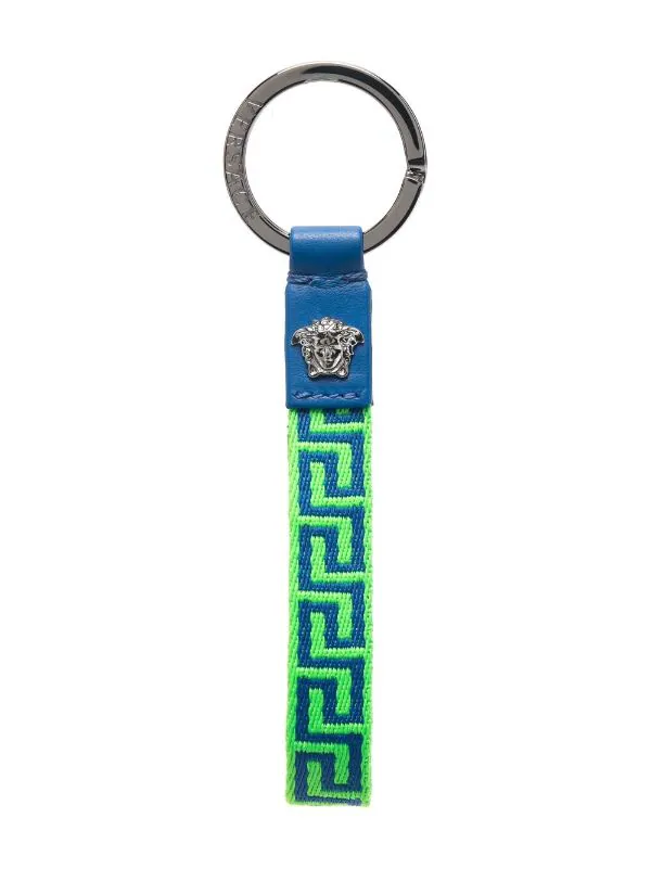 Détail Greca signature, motif Medusa, liseré en cuir, fermoir mousqueton. Matière : cuir.