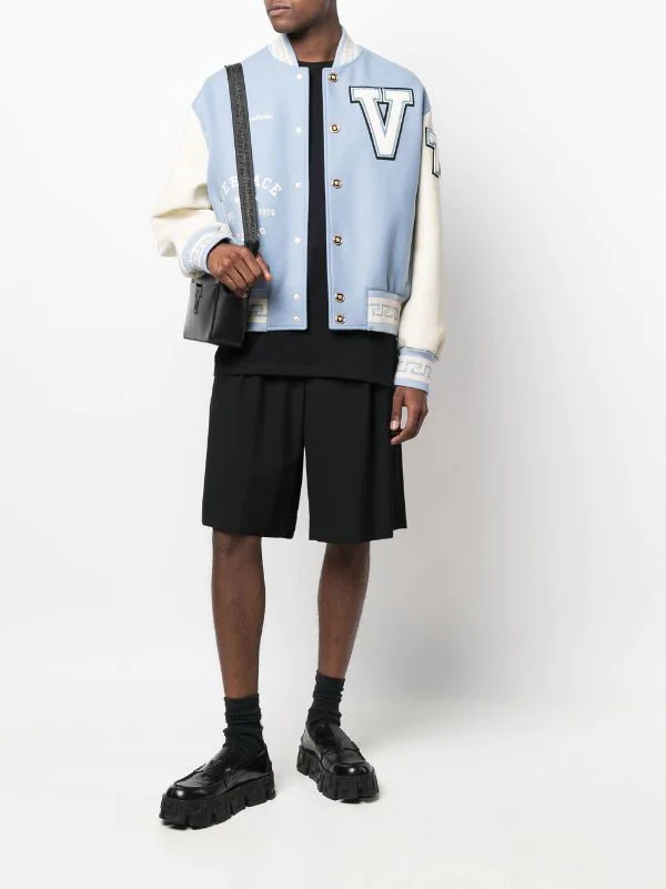 Bleu clair, blanc, laine vierge mélangée, coton, logo imprimé sur le devant, détail appliqué, col montant, fermeture à boutons pression sur le devant, design colour block, deux poches latérales fendues, poignets élastiqués, ourlet élastiqué.