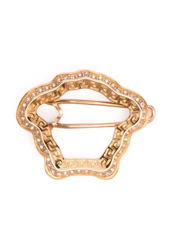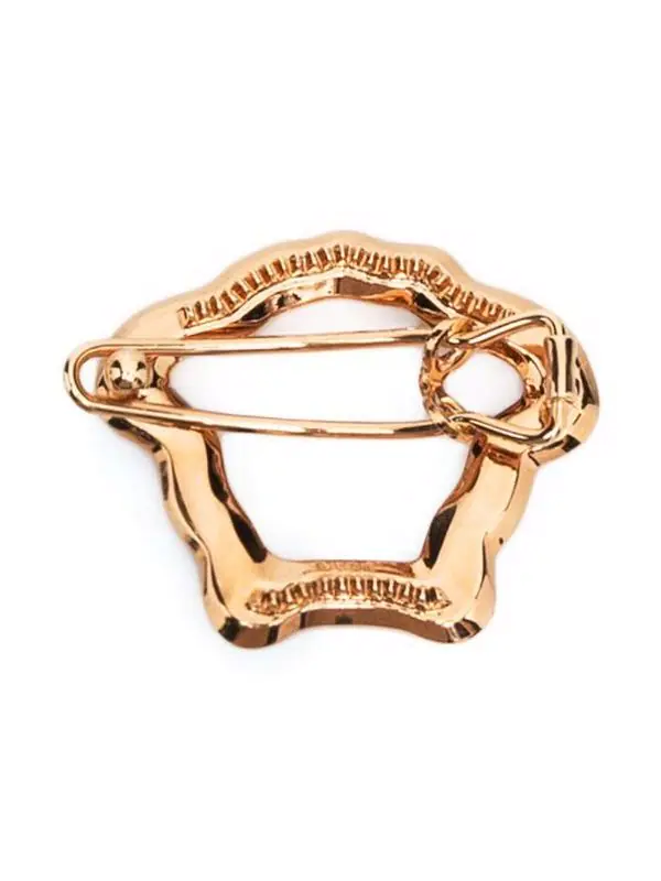 Finitions en métal doré, motif Medusa, fermoir clip. Matière : métal.