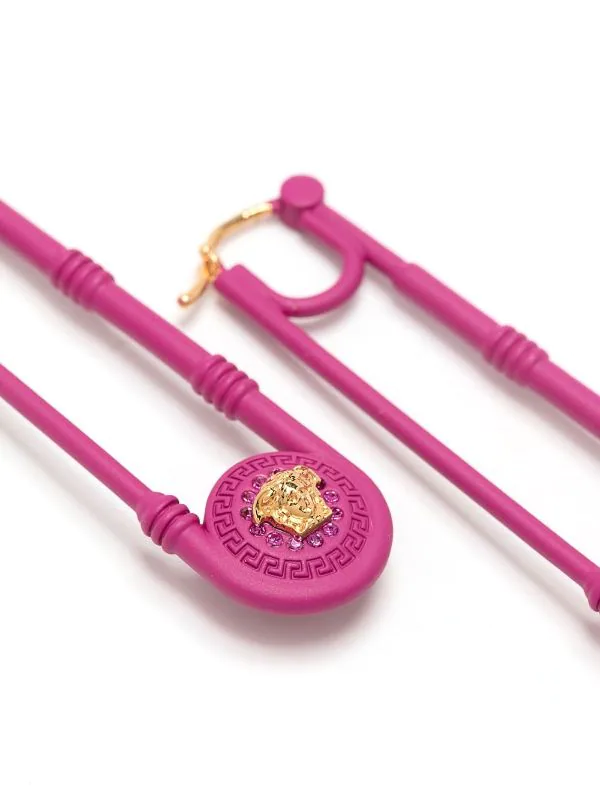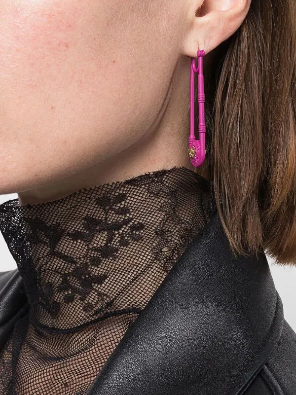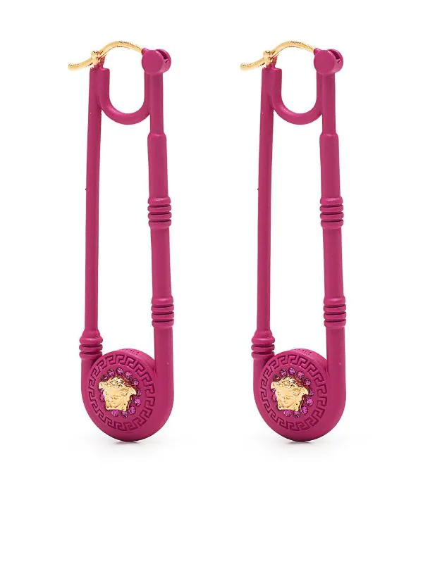 Magenta foncé, plaque logo dorée, motif Medusa, fermeture à loquet. Couleur : rose. Matière : métal. Ces boucles d’oreilles sont vendues par paire.