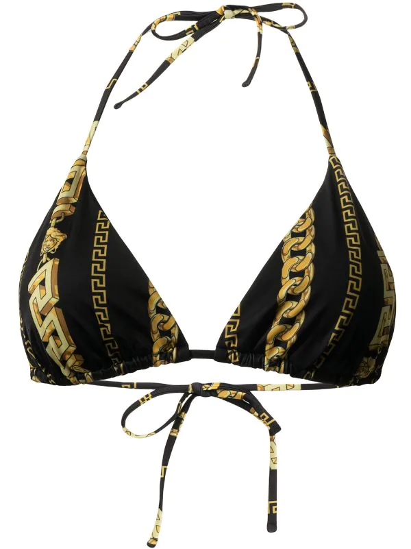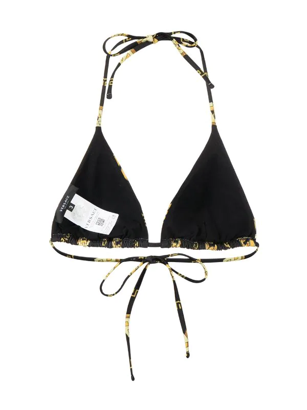 Construction stretch, imprimé chaîne, motif Greca signature imprimé, bonnets triangles, fermeture dos-nu à nouer, fermeture nouée au dos, doublure intégrale. Veillez à essayer les maillot de bain par-dessus vos propres sous-vêtements.
