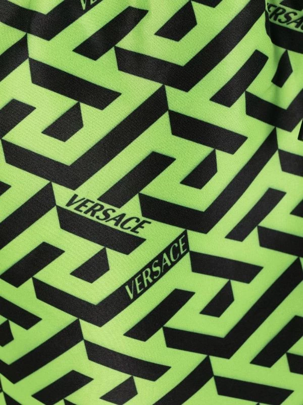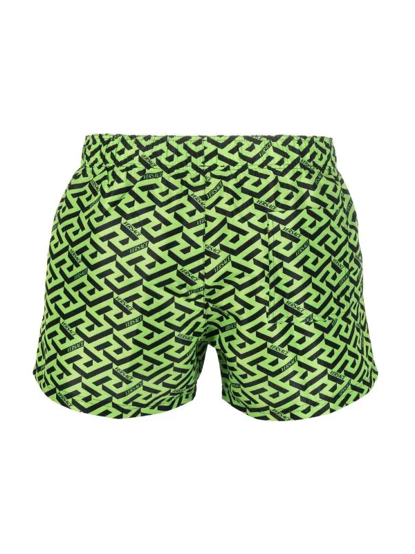 Modèle bicolore, motif Greca signature imprimé, taille élastique à lien de resserrage, poche arrière plaquée, coupe courte. Veillez à essayer les maillot de bain par-dessus vos propres sous-vêtements.
