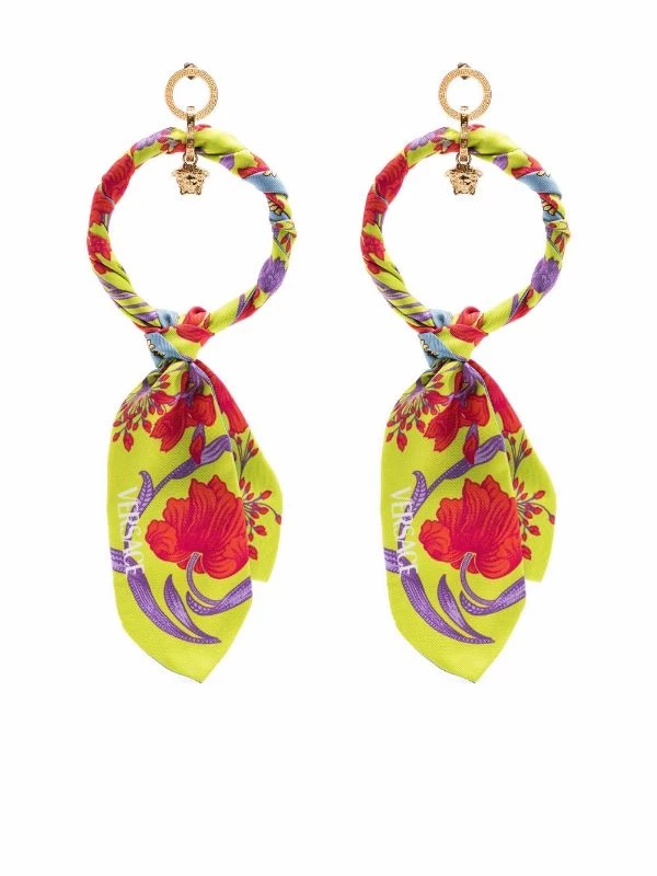 Imprimé à fleurs, motif Medusa, design de grande créole, fermoir papillon. Ces boucles d’oreilles sont vendues par paire.