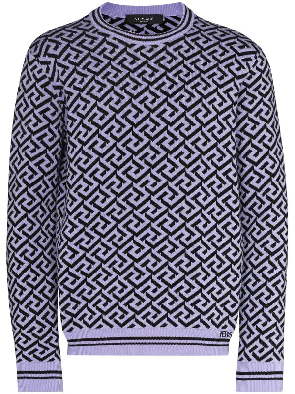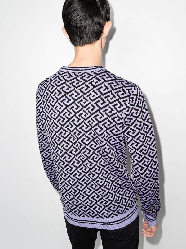 Motif Greca signature imprimé, col roulé, manches longues, ourlet nervuré.