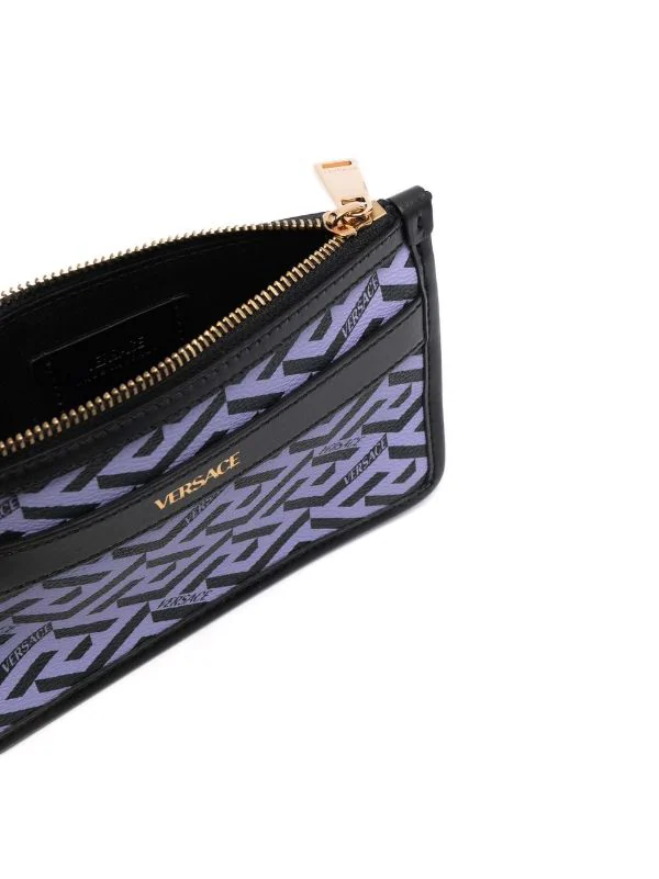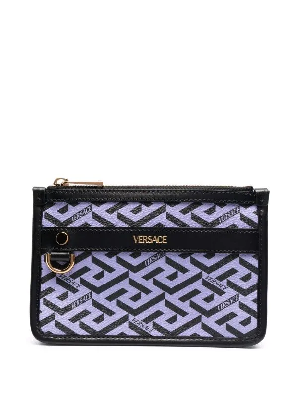Imprimé La Greca signature, logo imprimé sur le devant, fermeture zippée sur le dessus, patch logo intérieur, finitions en métal doré. Matière : cuir de veau.
