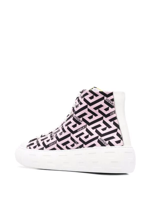 Design à empiècements colour block, imprimé monogrammé, motif Medusa, patch logo sur le côté, fermeture à lacer sur le devant, bout rond, semelle intérieure à logo, semelle à plateforme, hauteur cheville. Couleur : multicolore. Matière : cuir.