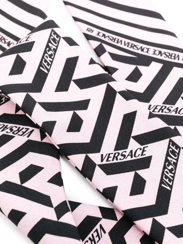 Motif Greca signature imprimé, patch logo intérieur, bout pointu. Matière : soie.