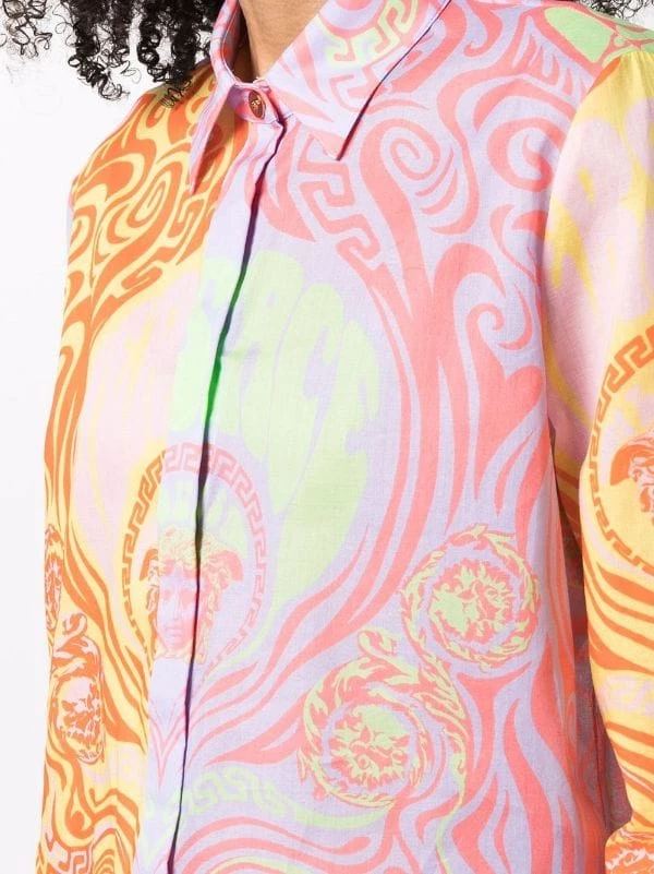 Motif Medusa, col classique, boutonnière dissimulée sur le devant, manches longues, poignets boutonnés, ourlet droit. Matière : coton.