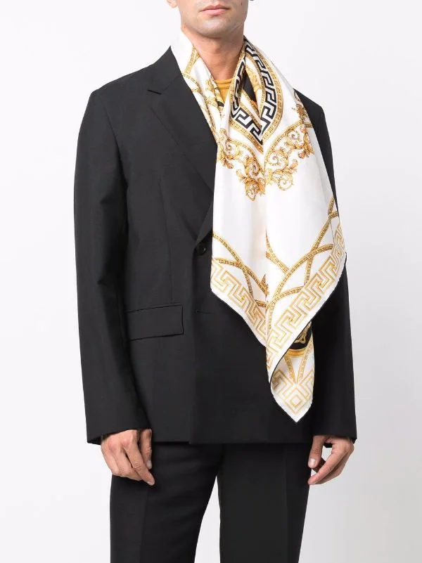 Motif baroque, bords finis, structure légère. Matière : soie.