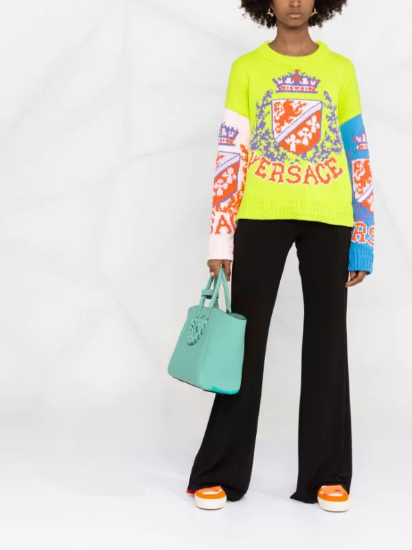 Design en maille, motif héraldique, logo brodé sur le devant, logo brodé sur la manche, design colour block, encolure ronde, manches longues. Couleur : multicolore. Matière : coton mélangé.