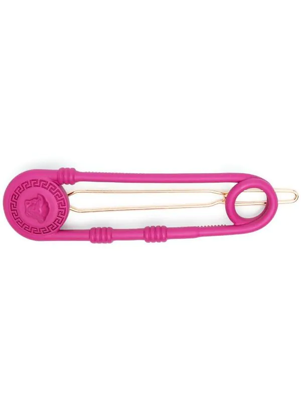 Détail d’épingle Medusa signature, détail Greca signature, logo gravé, détail nervuré.