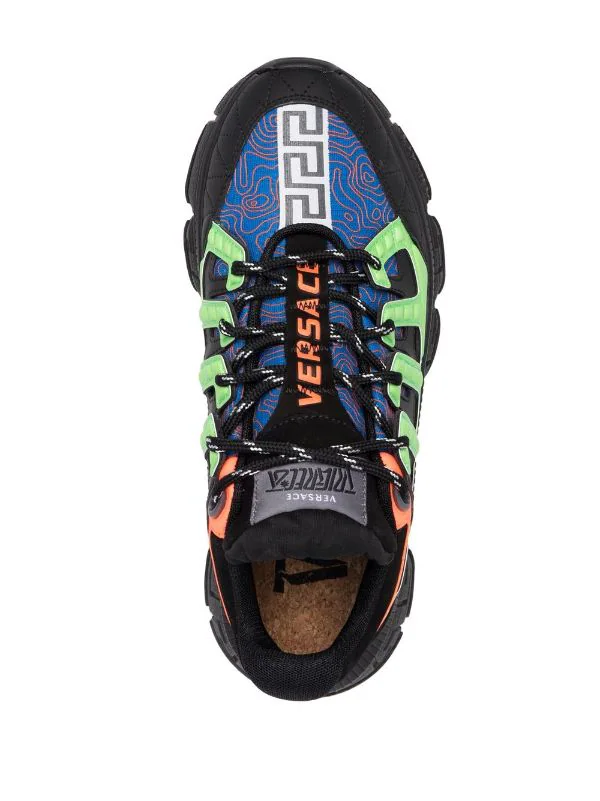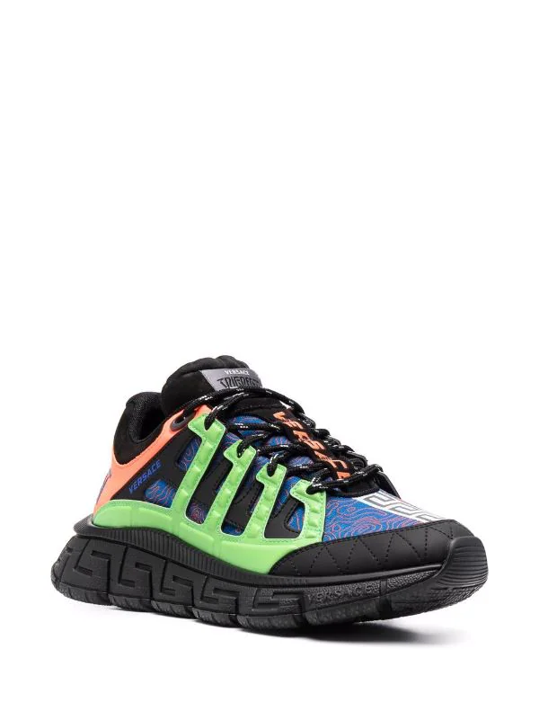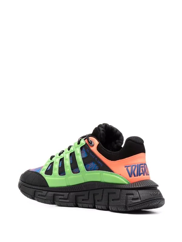 Design colour block, détail Greca signature, languette à patch logo, bout rond, fermeture à lacer sur le devant, semelle en caoutchouc. Matière : cuir.