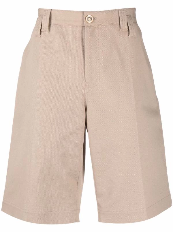 Passants de ceinture, fermeture à zip et boutons sur le devant, poche arrière plaquée, poche arrière passepoilée, coupe droite, hauteur genou.