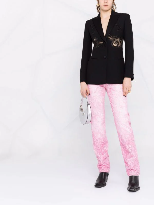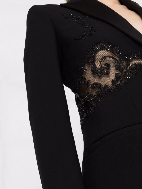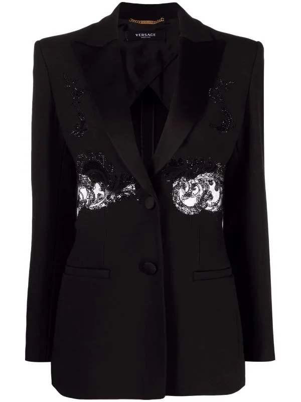 Versace blazer à détails de dentelle ornée de cristal