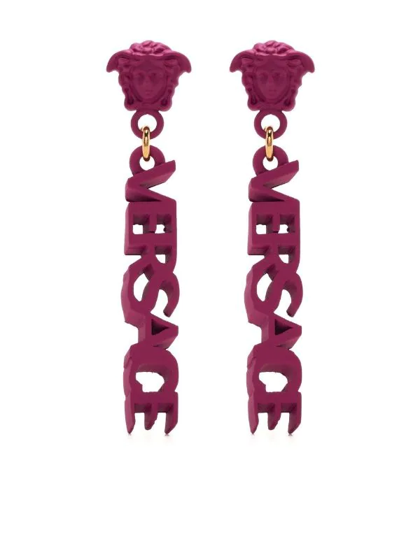 Violet, or, design pendant, design de puce d’oreille, détail Medusa, logo lettre. vendu par paire.