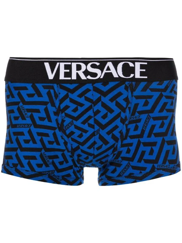 ( Nouvelle Collection ) Versace Boxer à Imprimé La Greca 5U290 SAPPHIRE + BLACK