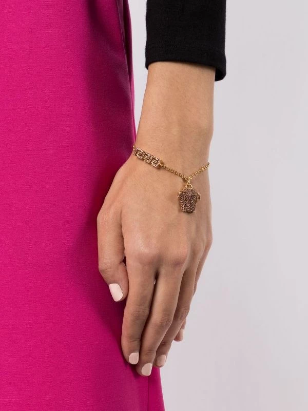 Or, violet, ornement en cristal, détail Medusa, détail Greca signature, fermoir anneau à ressort, taille ajustable.