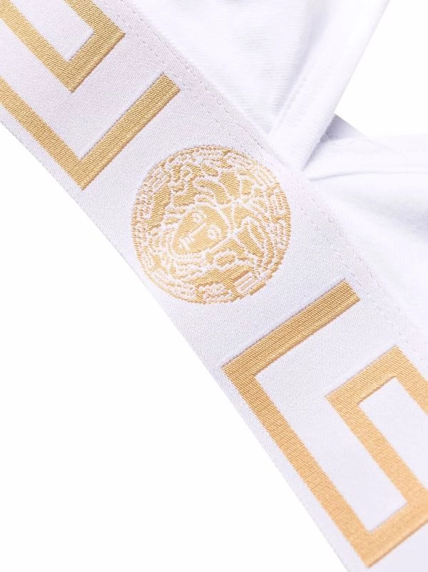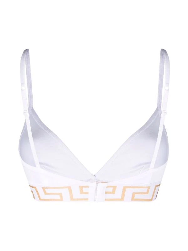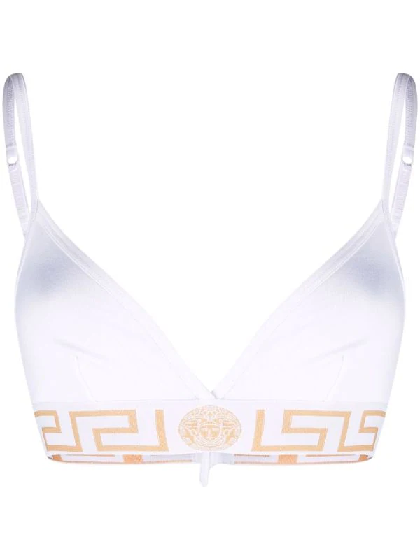 Motif Medusa, détail Greca signature, bretelles fines ajustables, bonnets triangles, fermeture à œillets et agrafes au dos, bande sous-poitrine élastiquée. Matière : coton mélangé. N’oubliez pas : cet article doit être essayé par-dessus vos propres vêtements.
