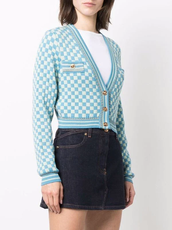 Versace cardigan crop à carreaux