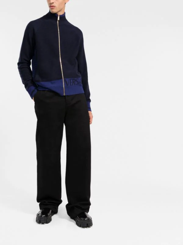 Versace cardigan zippé à logo en jacquard