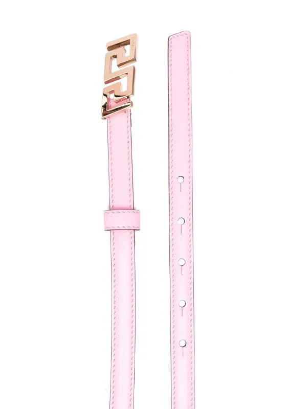 Finitions en métal doré, détail Greca signature, trous percés. Couleur : rose. Matière : cuir.